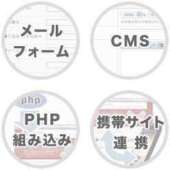 その他にも、既存ホームページへPHPシステムを組み込む事や、携帯サイトとの連携などにも対応いたします。