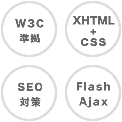 また、W3C準拠・XHTML+CSSと共にSEO対策を念頭においたコーディングを用いて制作いたします。
